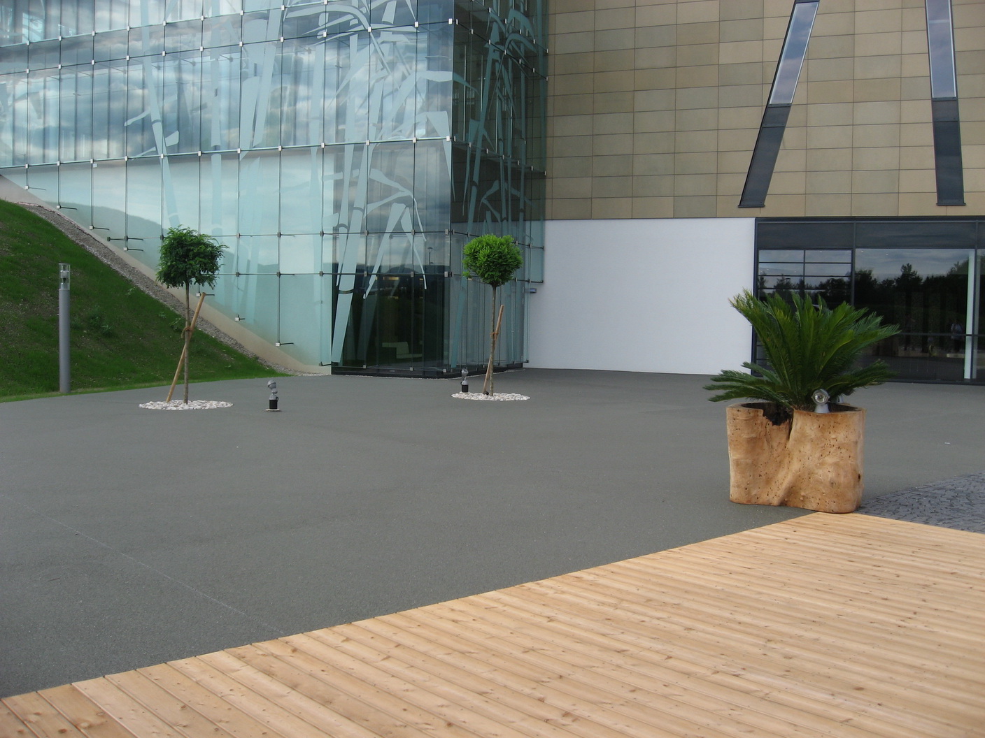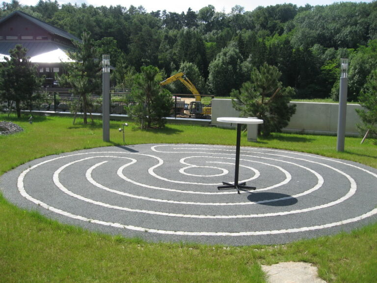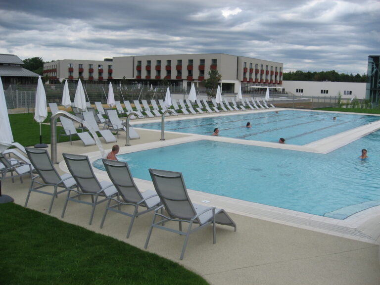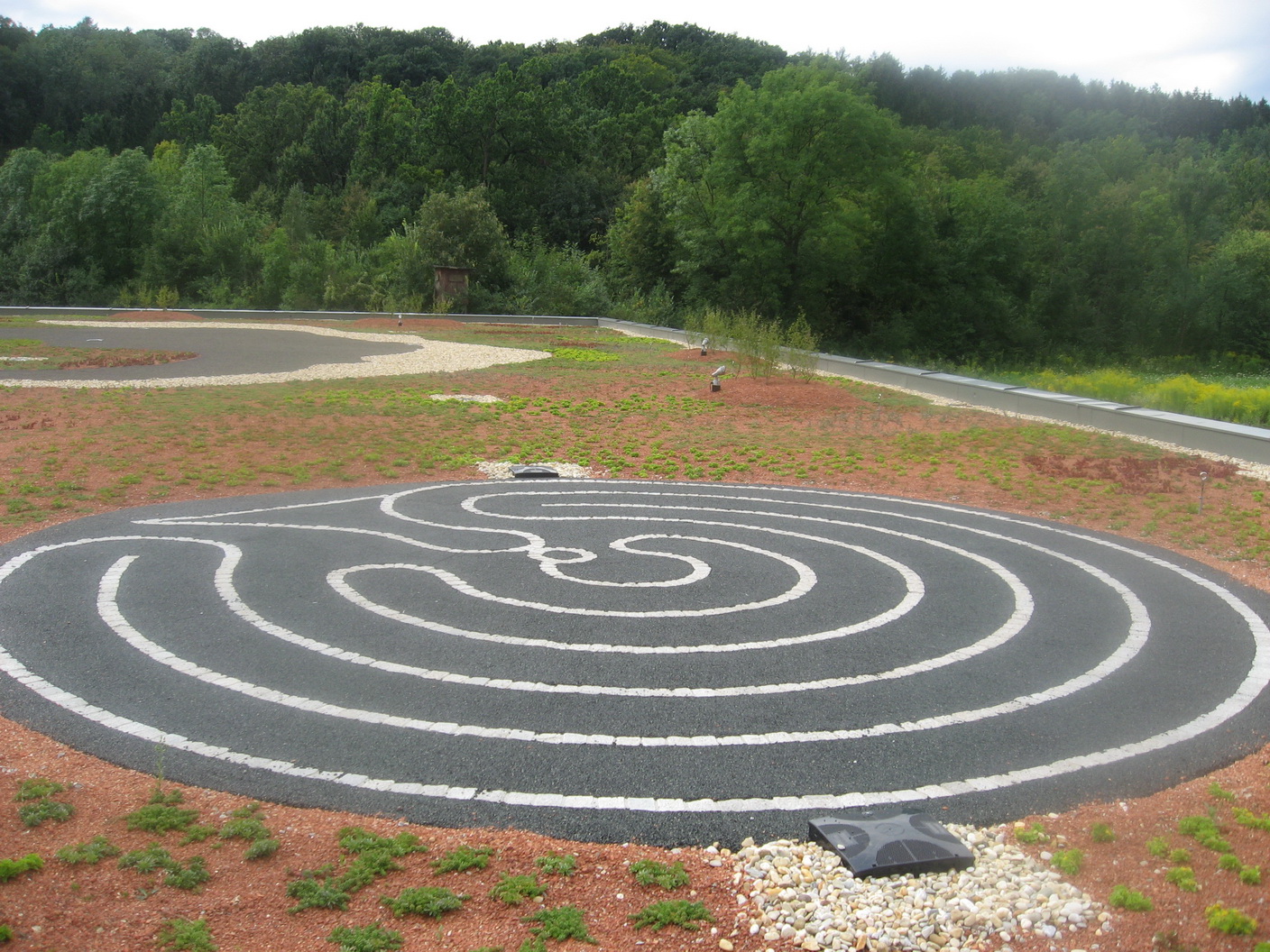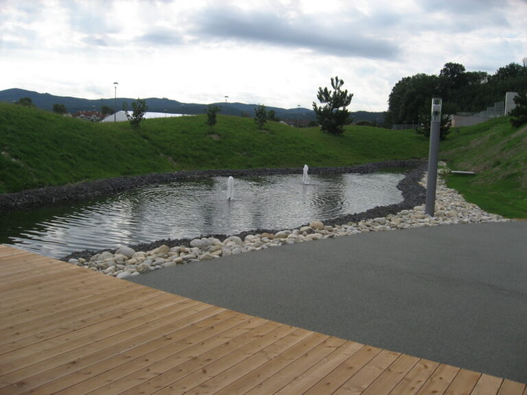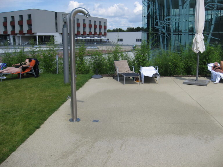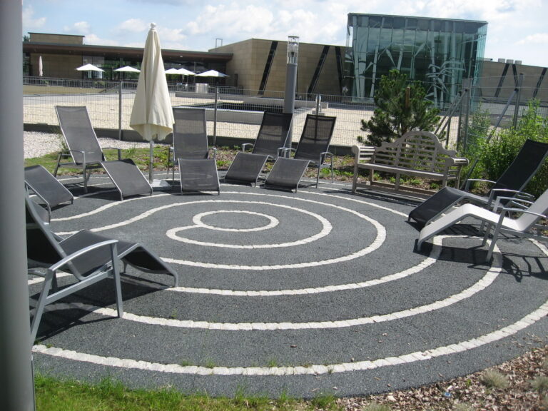 Vorplatz des Thermenhaupteinganges, Freiflächen rund um Thermenaussenbecken, Freiflächen des Wellnessbereiches, Labyrinth im Hotelbereich