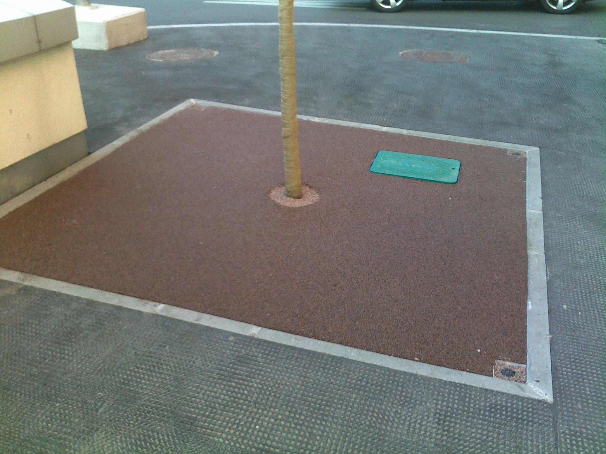 Im Zuge des Neubaues des Parkhauses 4 sowie des Kurzparkplatzes Ankunft" wurden Baumscheiben nicht mehr mit gusseisenene Platten sondern mit TerraWay ausgebildet."