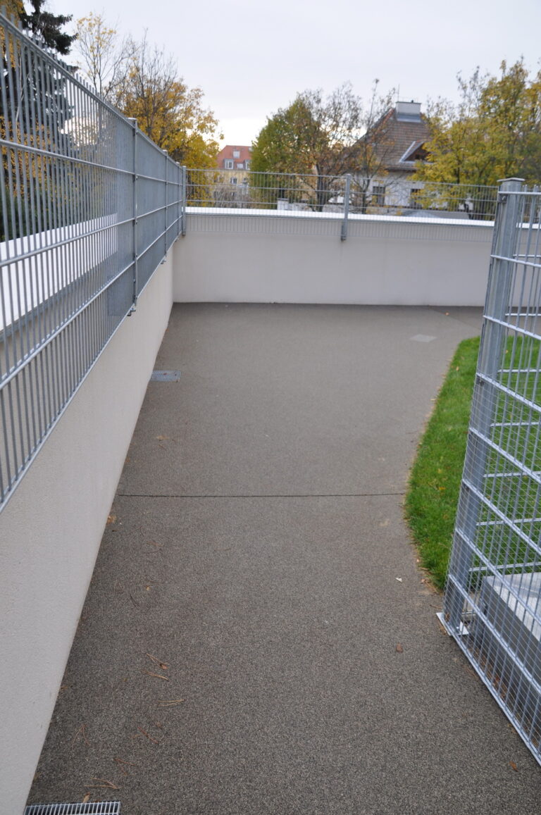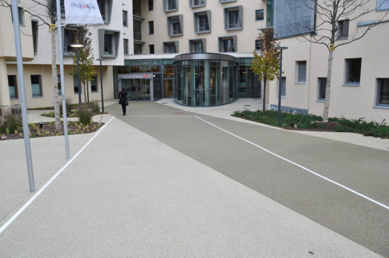 Die Wege und Plätze der neuen gemischten Wohneinheit (auch betreutes Seniorenwohnen) mit integriertem Kindergarten wurden zu großen Teilen mit TerraWay hergestellt