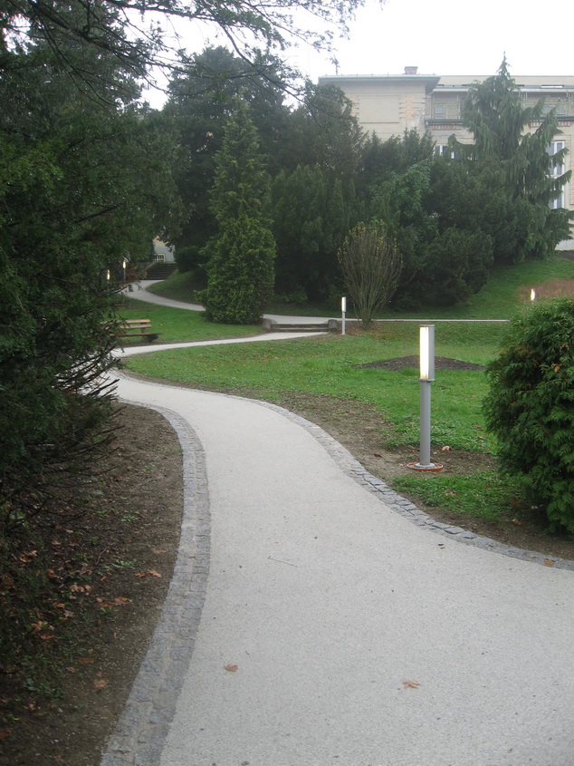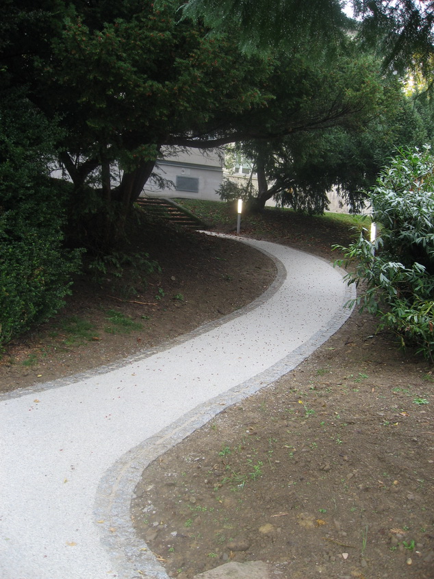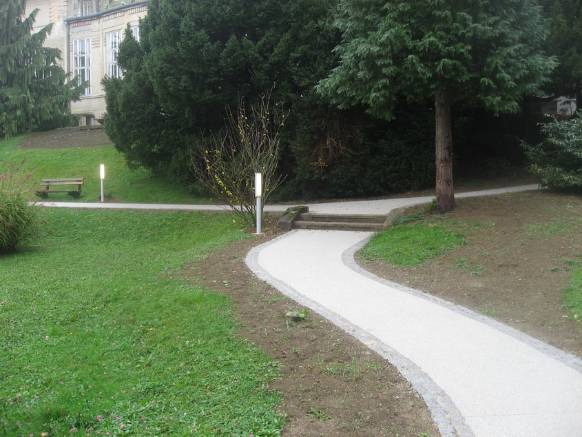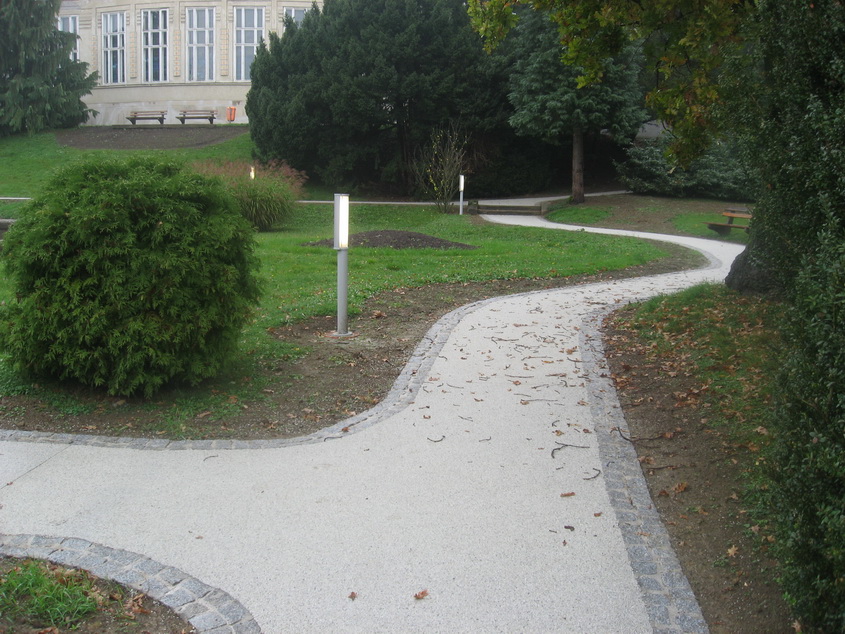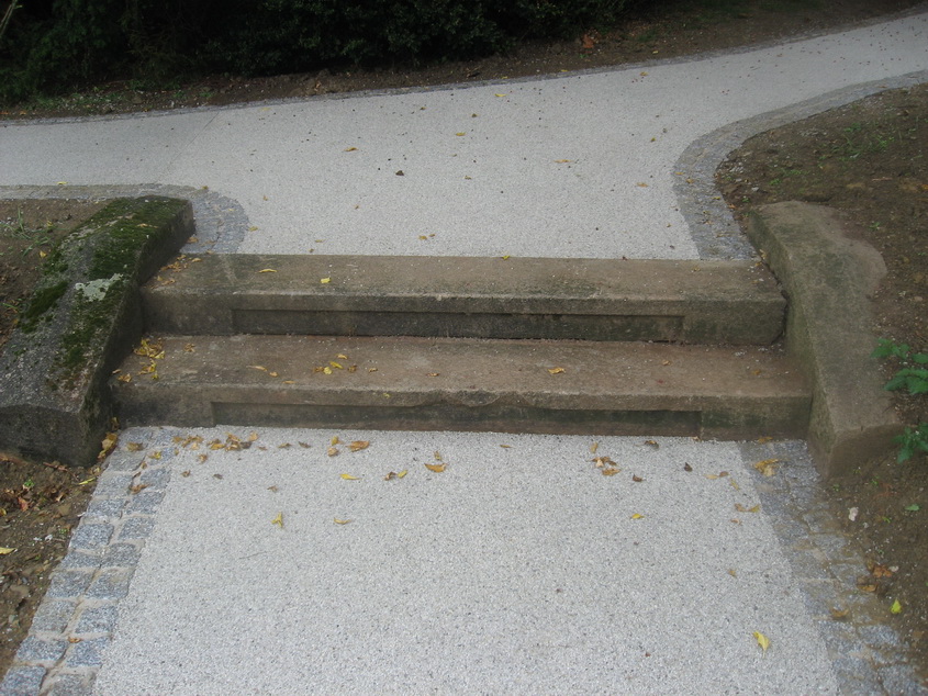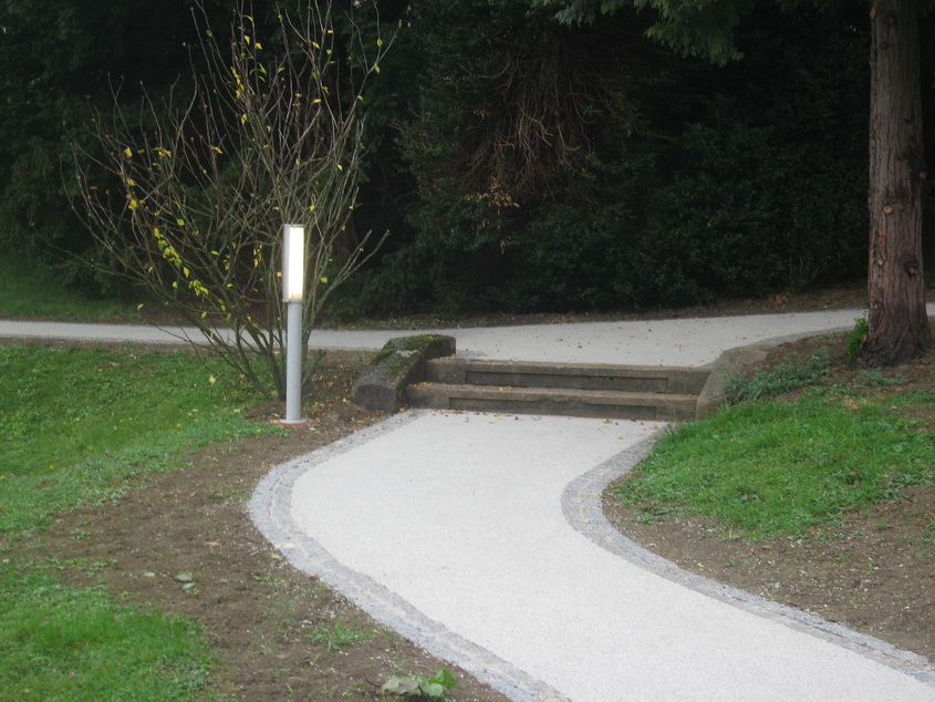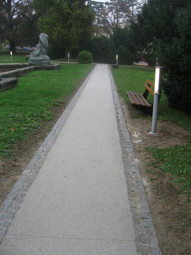 Die Wege im Park unterhalb des Kurhauses wurden mit Pflastersteinen eingefasst und mit Terraway hergestellt.