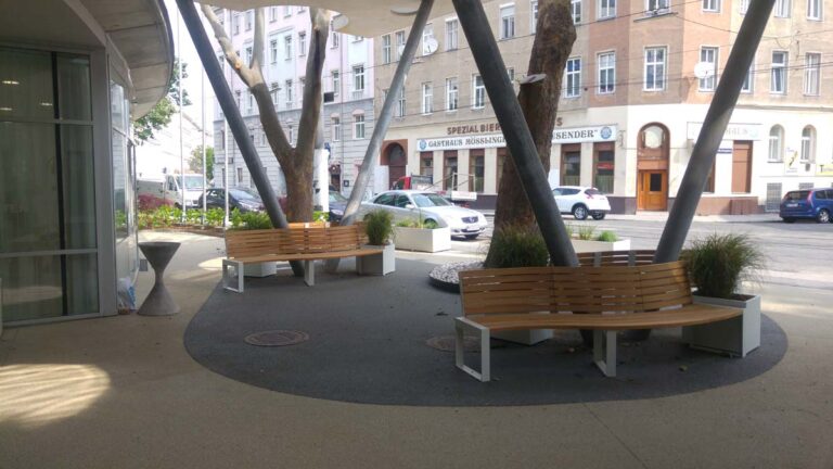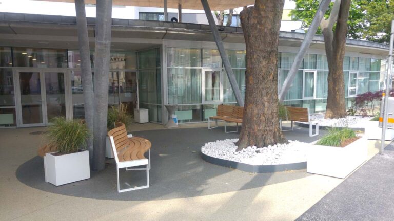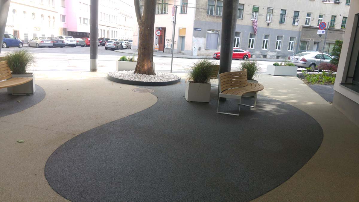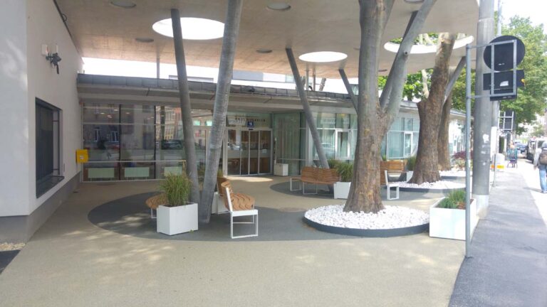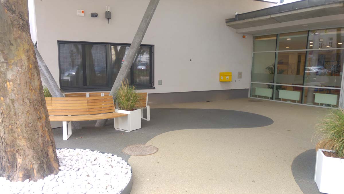Beim KWP Pflegewohnheim Rauscherstraße wurden sowohl der Haupteingang wie auch die Terrassen mit TerraWay gestaltet.