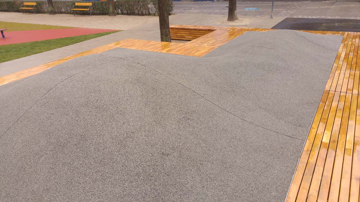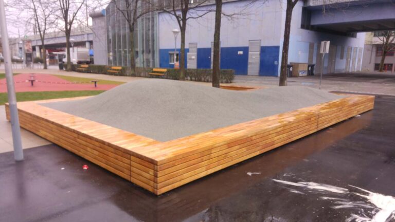 Die Neugestaltung der Parkanlage Am Schöpfwerk" wie auch die Sitzhügel im Bereich der U Bahnstadion wurden mit TerraWay neu gestaltet."