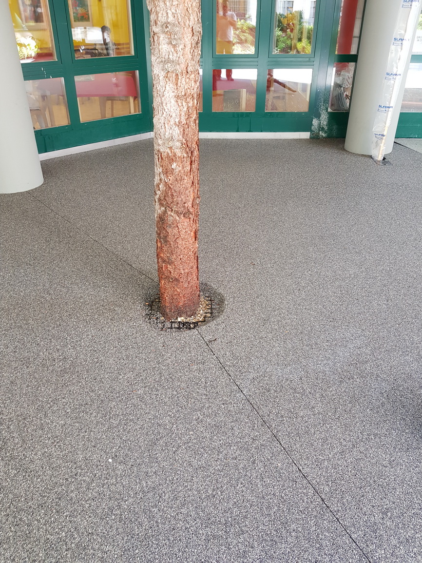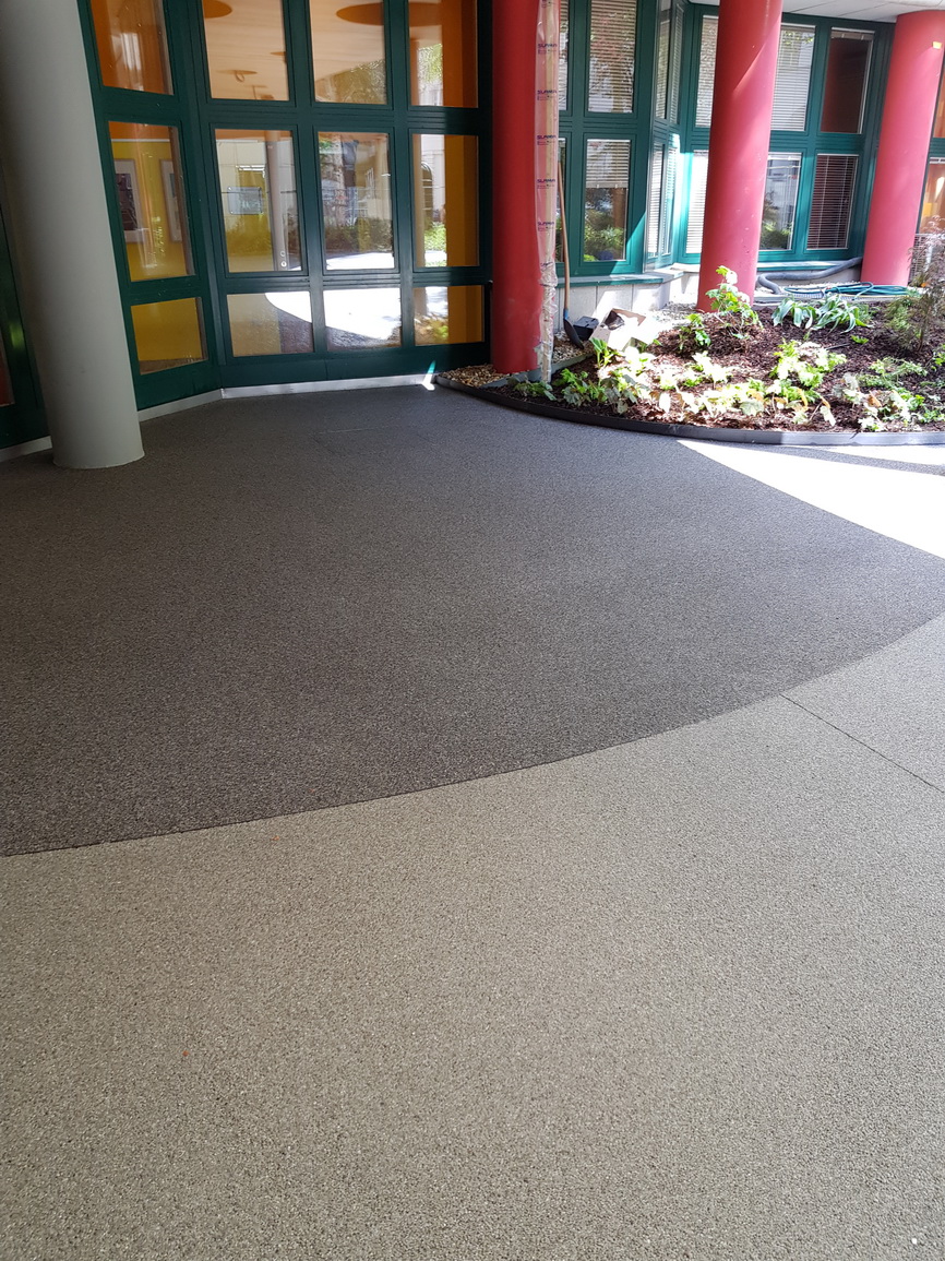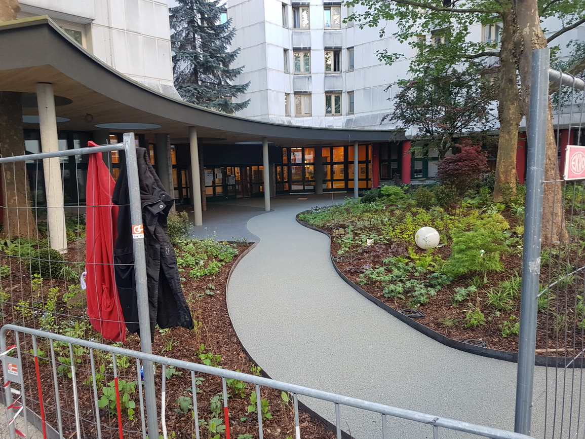 Der Haupteingang des KWP Hauses Neubau wurde komplett neu gestaltet. Auch hier wurde möglichst viel entsiegelt, daher TerraWay verwendet