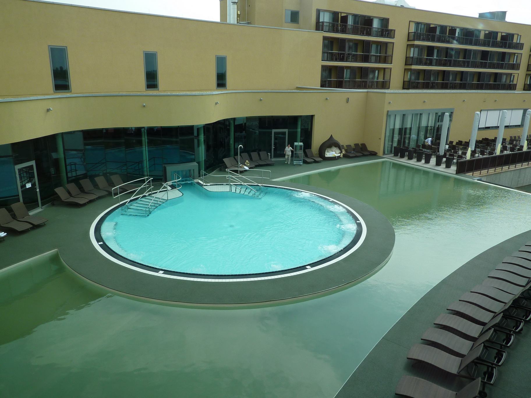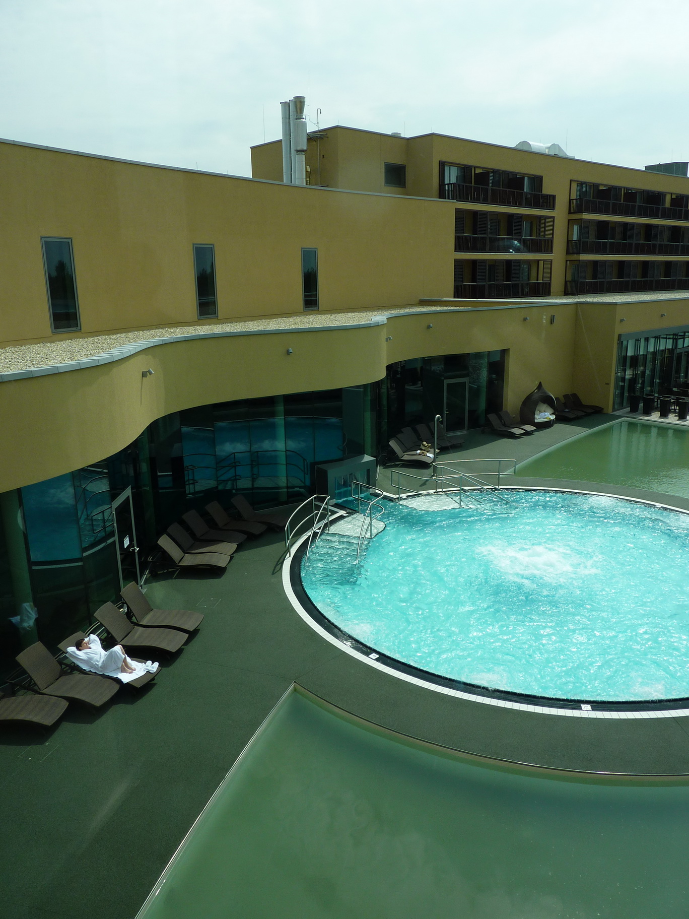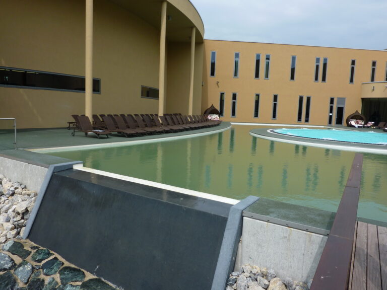 In den beiden Innenhöfen der St. Martin's Therme und Logde (Innenhof Wellnessbereich und Seewasserbecken) wurde der TerraWay Belag über der Garagendecke verlegt. Aufgrund der wasserdurchlässigen Eigenschaft von TerraWay konnte der Belag gefällelos verlegt werden.