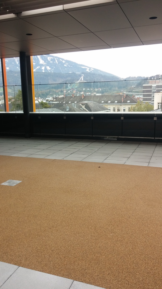 Die Dachterrasse beim Neubau der Universitätsklinik Innsbruck wurden färbig mit [...]