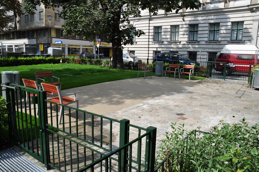 kleine Sitzfläche in der Parkanlage am Bennoplatz